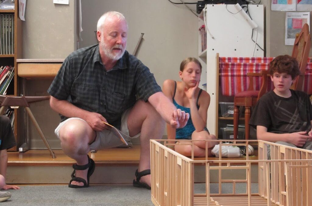 Paul Otteson, Alaira’s father, came to the New School to share a strangely beautiful student architectural model in balsawood to introduce the underlying structure of a building. The students were fascinated to learn about joists and studs and to think about placement of windows and doors…