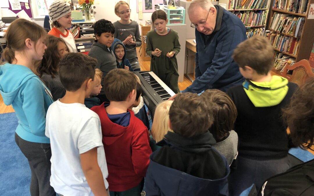 On Wednesday, October 17, Dick Ford became our third mystery guest for our Making the World a Better Place unit. Over 18 years ago Dick founded Signature Syracuse, a not-for-profit that provides music lessons, instruments, opportunities to perform as well as career counseling and college preparation visits — all for free — to Syracuse city middle and high school students. Dick shared his passion for music and the value of music in our society. He ended his presentation by playing for us.