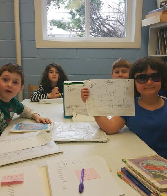 Some of our younger students have been participating in their first book club. We have been reading several of the Fox books by Edward Marshall, including Fox On Wheels, Fox and His Friends, Fox On the Job, Fox Be Nimble, Fox On Stage, and Fox Outfoxed. Each book is divided into three chapters, each a humorous story about Fox and his family, friends, and neighbors. The children read one chapter each week. They write a response which includes a picture and a sentence or two of something in the story. When we meet, the students share their responses and then we discuss the story. As there is lots of dialog, we usually assign parts and do a little “readers’ theater” of a page or two from the story.