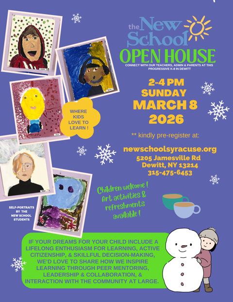 At The New School Syracuse, we believe that learning should be a joyful adventure, sparking curiosity and creativity in every child. Since 1988, we have dedicated ourselves to creating a nurturing environment where young minds thrive through hands-on experiences and collaborative exploration. We invite you to take a closer look at the heart of our vibrant community by watching our short film here, and discover the magic that makes our school a place where kids truly love to learn.