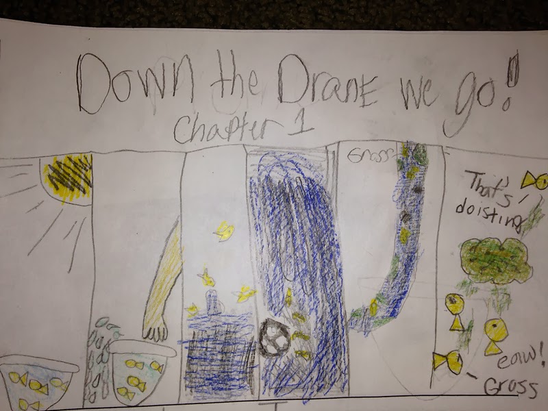 Emily, Mira, Dash and Jonah are taking part in a class called Brain Bank. Brain Bank is a reading and writing program with science as the main topic. They take turns reading books out loud to each other before completing comprehension, vocabulary or writing activities. They read “Keeping Clean” about how different animals bathe and then worked together on a vocabulary puzzle. “On the Move” was about how humans and various animals run, walk, jump, swim, swing, hang, slide and slither. Each student used information from the book to write their own animal riddle using descriptive clues for the other students to guess. After reading “Down the Drain” about how and where water moves, they collaboratively wrote a story pretending they were goldfish who accidentally get flushed down the drain. They are currently working on individual descriptive writing pieces describing why trees are important after reading “Trees are Terrific.”