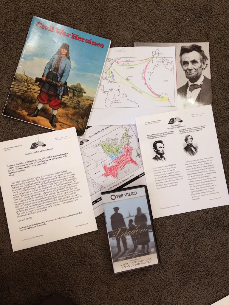 The oldest group of students finished up their in depth study of the Civil War. After learning about the local abolitionist movement and underground railroad here in Syracuse at the Onondaga Historical Association, the students analyzed the causes of the war from both the north and souths perspective. They read and interpreted the inaugural address of Abraham Lincoln and Jefferson Davis. To better understand what life was like during the war, they read and analyzed primary source letters from women, children, nurses, and confederate, union and black soldiers. As a home project with their families they interpreted the Gettysburg Address and put it into their own words. In small groups, they studied the Emancipation Proclamation and the 13th, 14th and 15th amendments. Each student researched and presented about a Civil War Heroine. To summarize and round out the unit they watched the Freedom: A History of Us videos A Fatal Contradiction and A War to End Slavery where they had remarkable discussions sharing their ideas and feelings about freedom, contradiction, the emancipation proclamation, reconstruction, Gettysburg, how students learn about the Civil War in the south, law and equality.