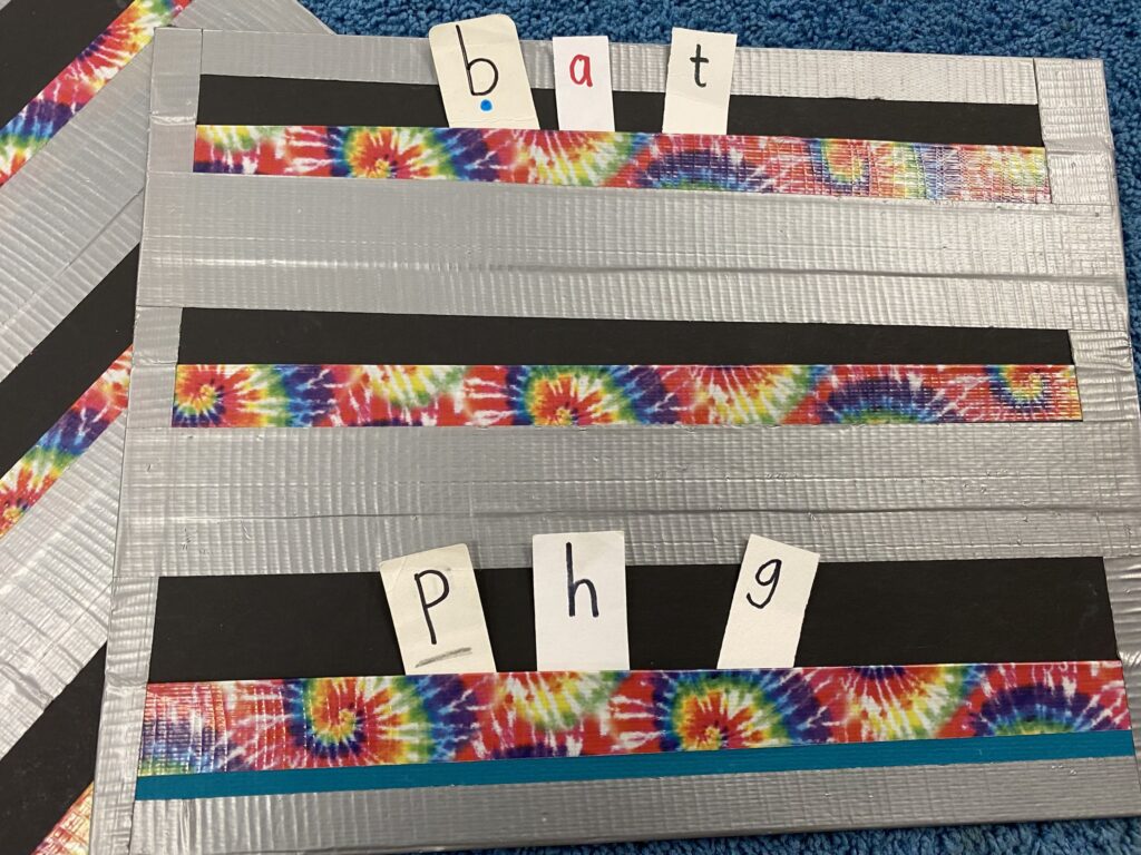 In mid November Kindergarteners moved on from constructing words with objects, for example a Comb, Apple and a Turtle means CAT to making them with their sound boards. A sound board allows the students to have a group of consonants and one vowel (a) to make words.
