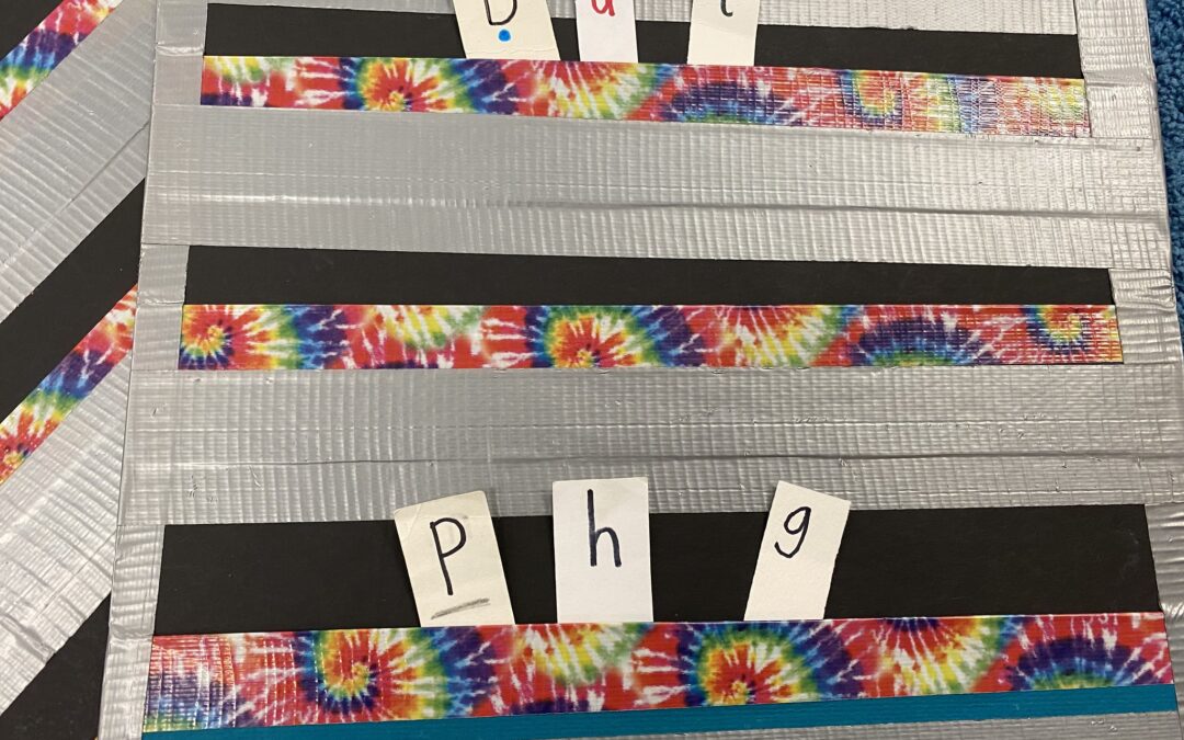In mid November Kindergarteners moved on from constructing words with objects, for example a Comb, Apple and a Turtle means CAT to making them with their sound boards. A sound board allows the students to have a group of consonants and one vowel (a) to make words.