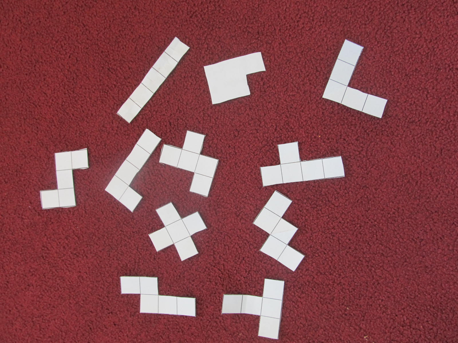 Let me introduce you to the powerful pentomino! Each unique shape shares one common attribute. It has 5 squares. With these manipulatives, each child cut and created their own set, we were able to explore so many geometry concepts. We considered flips, turns and slides. We learned how to calculate the area of a shape and its perimeter. We then moved on to the concept of symmetry. Finally we used these shapes to make shapes that were similar and shapes that were congruent. A lot of learning came from 11 different pentomino shapes!