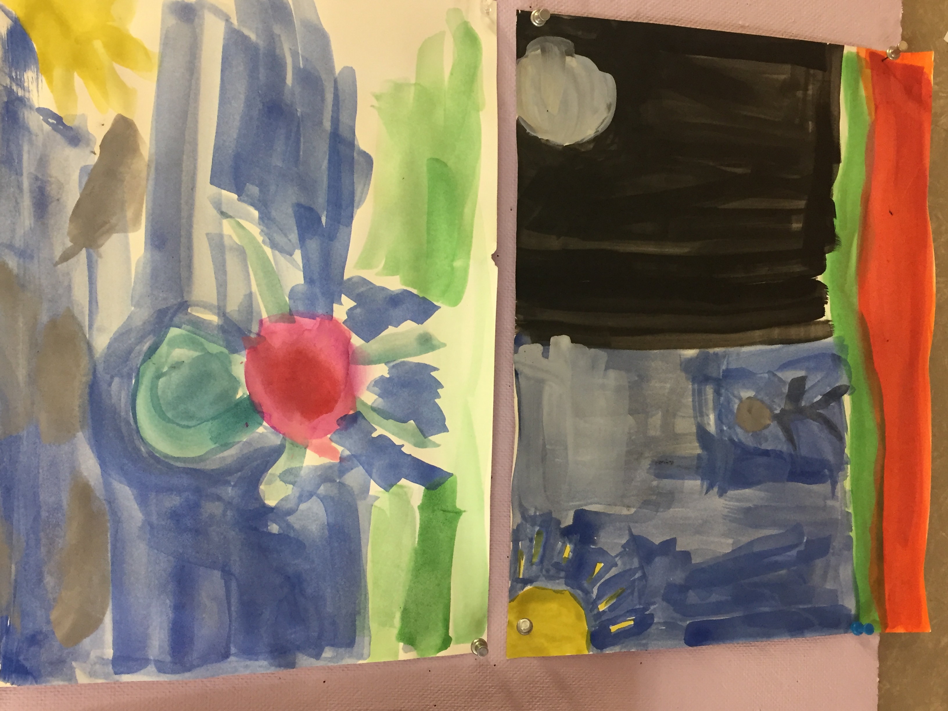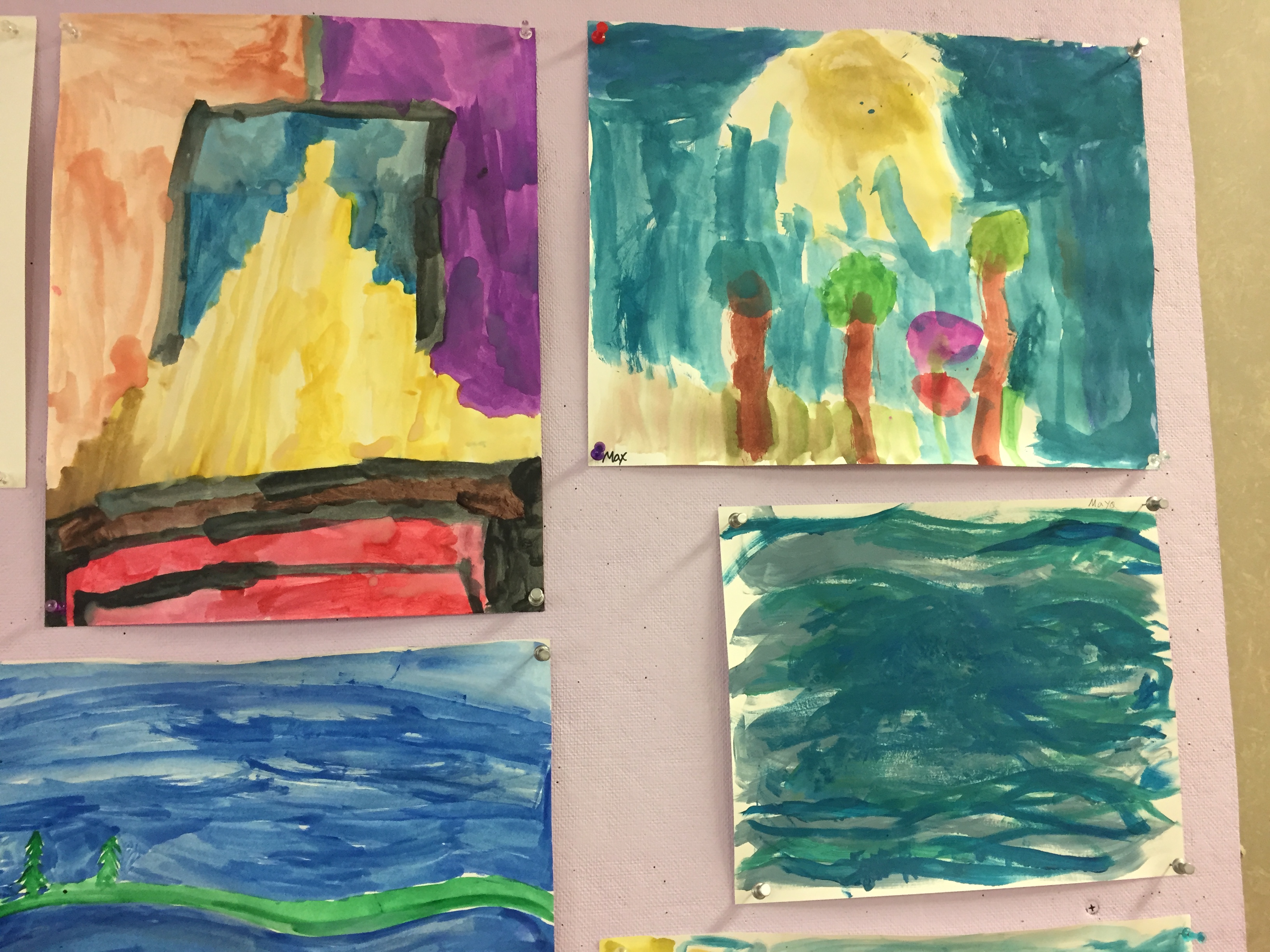 Johann Sebastian Bach’s Concerto for 2 violins, the Brandenburg Concerto No. 1 in F Major, Suite for Orchestra No. 3 in D Major and the Concerto for 2 pianos and Orchestra in C Minor inspired us in many ways. After listening to his music we enjoyed learning about the composer by reading Tom Leonard’s “Becoming Bach.” After talking about the music, how it made each of us feel, and what images came into mind the whole school created paintings inspired by the sounds of violin, piano, and harpsichord. It was amazing how quiet the children were as they painted. Bach’s music certainly relaxed everyone.