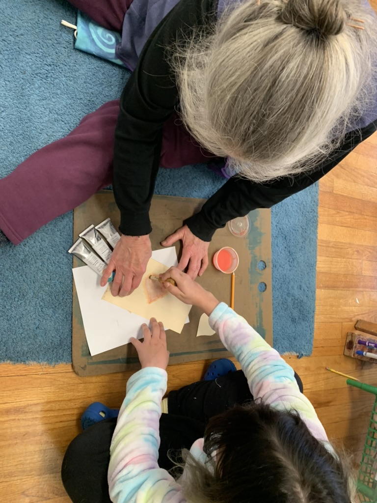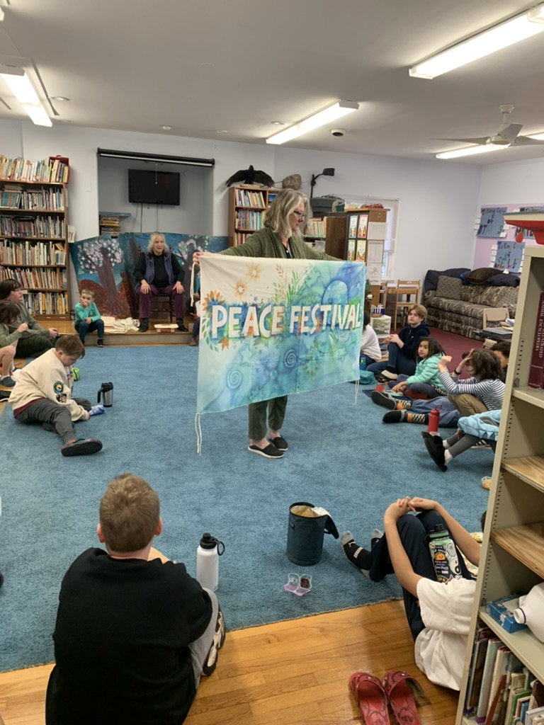 In early November, Karen Kerney, celebrated artist from Syracuse Cultural Workers, visited our school. Well known for her charming fold out depiction of the Haudenosaunee Thanksgiving Address, we invited her to our school to share her stencil art process. Then children had the opportunity to create their own stencil of something they are thankful for. The stencils will be assembled to create a banner at our school.