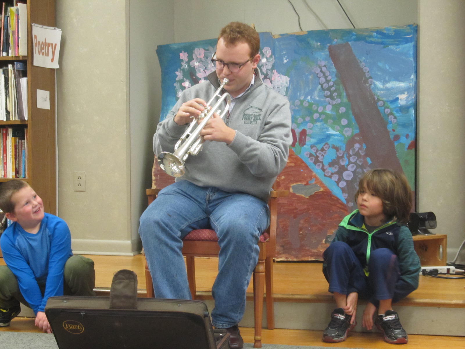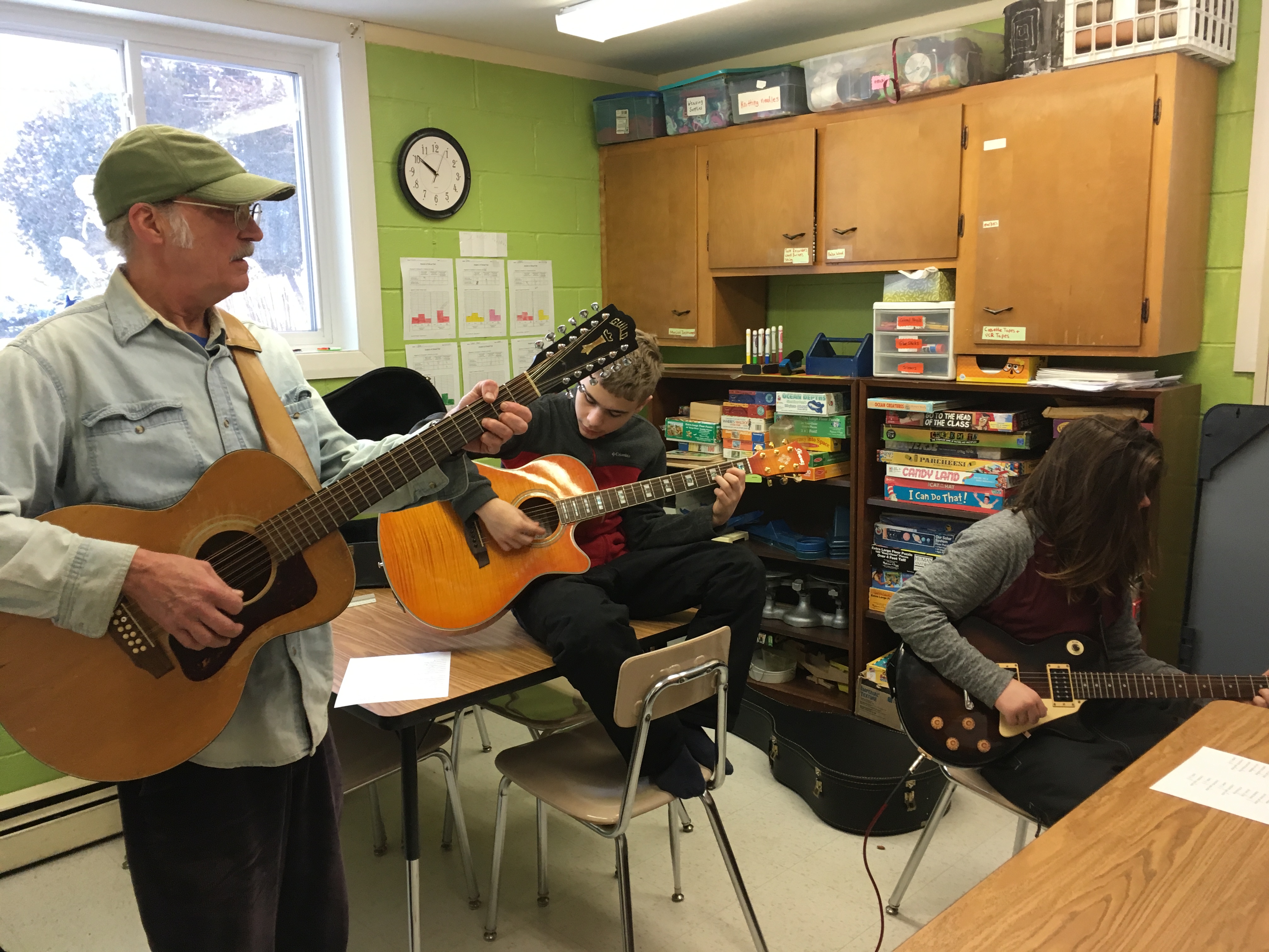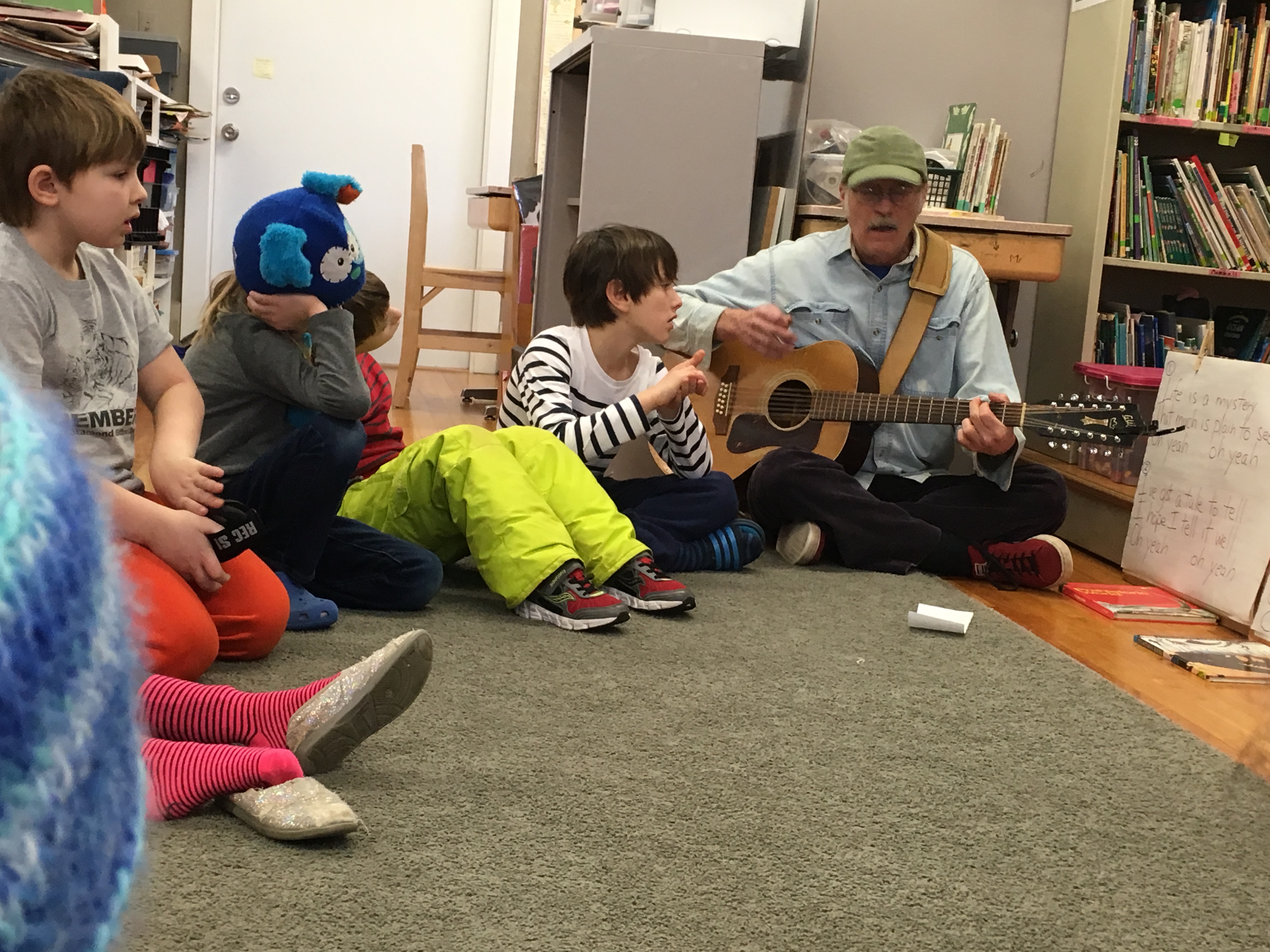 Is music important you? It’s important to us too. Because we are a small school, we can’t offer some of the extracurricular activities that large school districts are able to. That means we have to be creative to include music in our curriculum. Our students enjoy singing once a week with Ken Hynson, a parent of an alumnus, who has continued to volunteer in our school even though his son graduated 4 years ago! He also mentors three older students who are part of a guitar club. As often as we can, we invite musicians to share their talents. Most recently we invited a trumpeter to come support our reading of Trumpet of the Swans. Students listen and draw to music and we take them on field trips to OCC. In December, half the school, enjoyed listening to OCC’s Guitar Ensemble playing pieces by Pieter Van Der Staak, and Heitor Villa-Lobos. Nothing better than listening to live music. Some of our students have private music lessons and we invite them to share their talents with us. Most recently we have examined the connection between poetry and lyrics. Older children brought their favorite lyrics to share and discuss. Then we listened to the songs themselves.