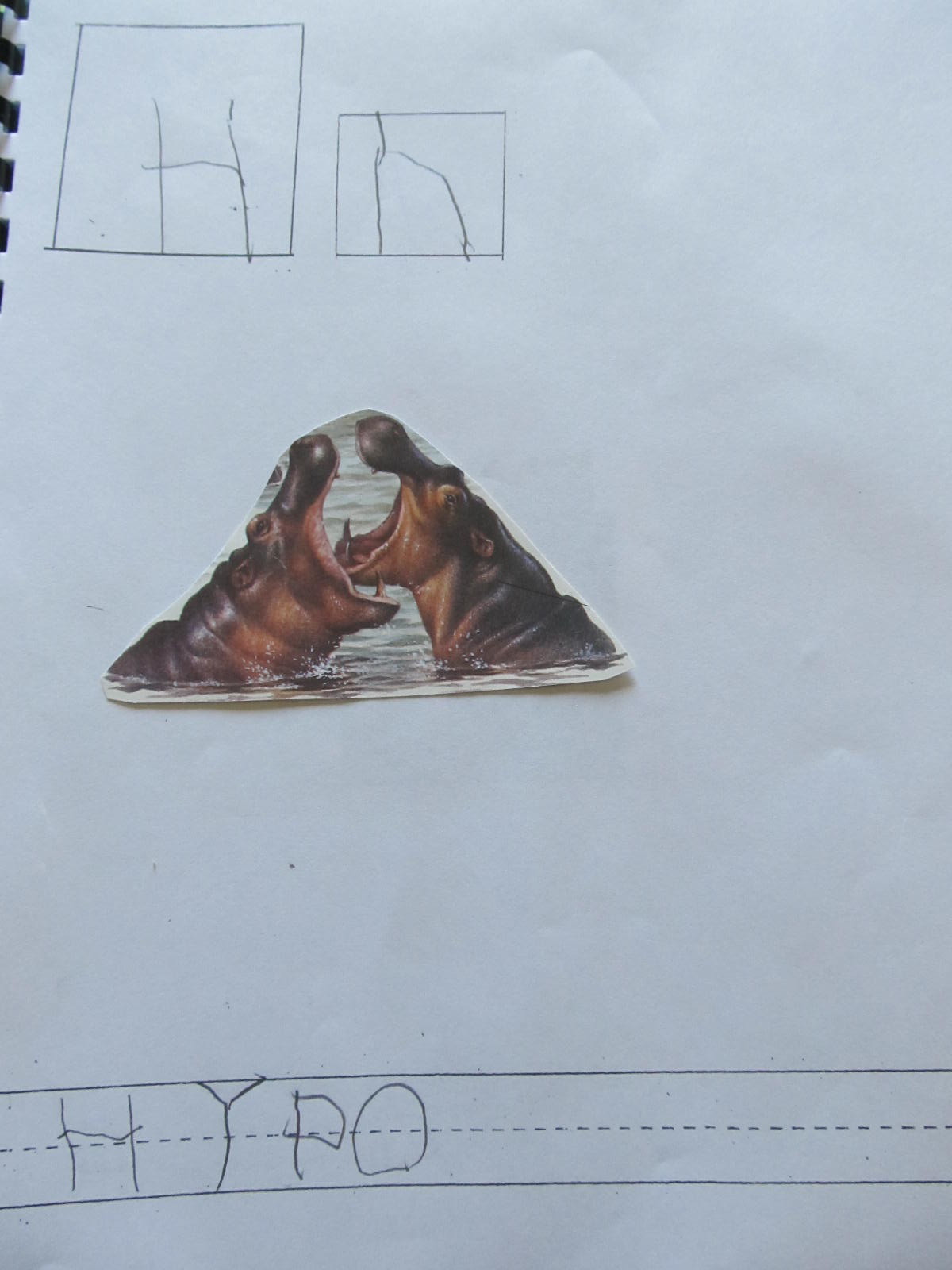 Our youngest students are part of a weekly class called Picture Stretch. Children first work on their cutting skills by cutting out a picture of an animal. After we discuss the pictures we practice writing the first letter for that animal. Last week we had cute pictures of otters to enjoy and glue into their books. Children practiced writing capital O and lower case O. The final activity involves S-T-R-E-T-C-H-I-N-G out the word “otter.” We help children identify the sounds they hear in the word? Some children might only hear “o”, while others might hear the “o” and “r.” Some might be even able to identify the “t” in there too. Rhino could be “rno,” horse “hrs.”Children are able to work at their own pace, as we help them develop sound/symbol correspondence .