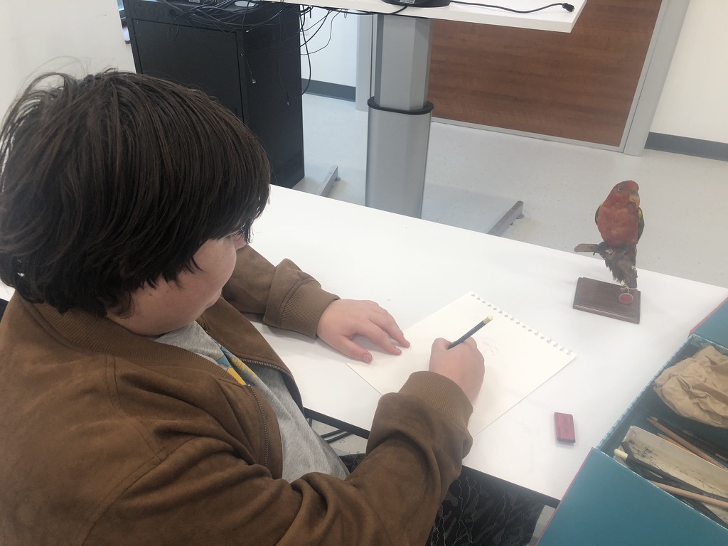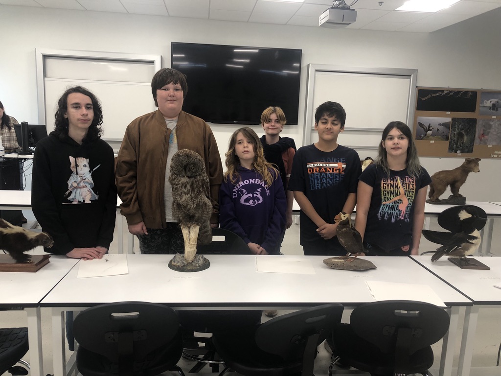 In November a small group of our older students expressed an interest in visiting the Gateway Center at SUNY ESF to view some of the finest specimens of birds, mammals, freshwater and marine fishes, reptiles and amphibians in their Roosevelt WildLife Collection. For two hours they were granted access to a subset of this collection where they could observe and draw a specimen of their choice.
